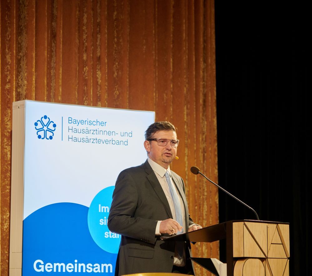 Damit ein hausärztliches Primärarztsystem auch funktionieren kann, wenn weniger Hausärztinnen und Hausärzte einem wachsenden Versorgungsdruck gegenüberstehen, „haben wir die Lösung HÄPPI“, brachte Dr. Ritter das Versorgungskonzept ins Spiel, das Schwerpunkt der anschließenden Podiumsdiskussion zum Thema „Lösungsideen primärärztlicher Versorgung“ war. Dort vertiefte Dr. Ritter die Bedeutung des HÄPPI-Pilotprojekts in Bayern, in dessen Rahmen neun Hausarztpraxen in Bayern durch das Bayerische Staatsministerium für Gesundheit, Pflege und Prävention gefördert werden. Ziel sei, aus den im Förderprojekt gesammelten Erfahrungen eine Art Kochbuch zu erstellen für weitere Praxen, die den Transformationsprozess zu HÄPPI ebenfalls starten wollen. Fragen wie „wo kann ich meine PCM einsetzen“ oder „welche Digitalisierungs-Tools gibt es“, das müsse nicht jede Praxis neu herausfinden. Sie werden in dem „Kochbuch“ aufgegriffen, in dem genau nachzulesen sein soll, wie welcher Ablauf gestaltet werden kann. „So kann sich jeder rausziehen aus dem Konzept, was er für die Versorgung vor Ort braucht“, so Dr. Ritter.
