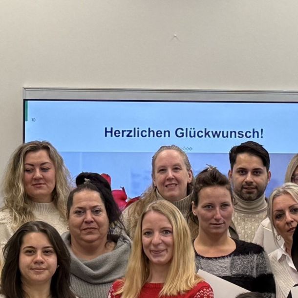 Im Oktober sind in München zwei weitere Gruppen gestartet – 40 Teilnehmende, die im Juli 2026 fertig werden. Außerdem wurde die erfolgreiche Maßnahme inzwischen auf viele weitere Standorte in ganz Bayern ausgeweitet. Sie wird auch im neuen Jahr fortgesetzt, wobei einige Kurse auch hybrid angeboten werden. Damit können Teilnehmende an weiter entfernten Standorten über Video-Schalte am Unterricht teilnehmen.
