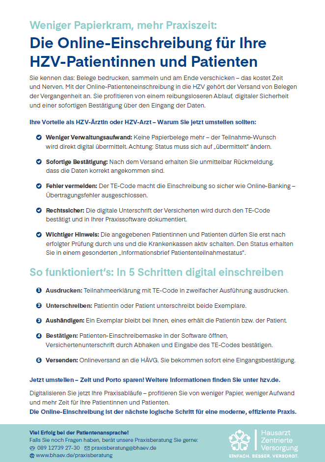 Info Online-Einschreibung HZV-Patientinnen/Patienten