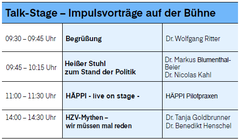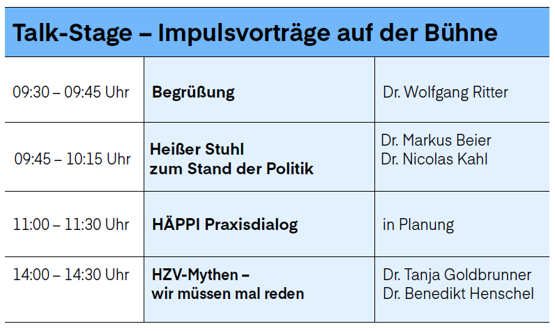 - Impulsvorträge zu den Themen Politik, HÄPPI und HZV